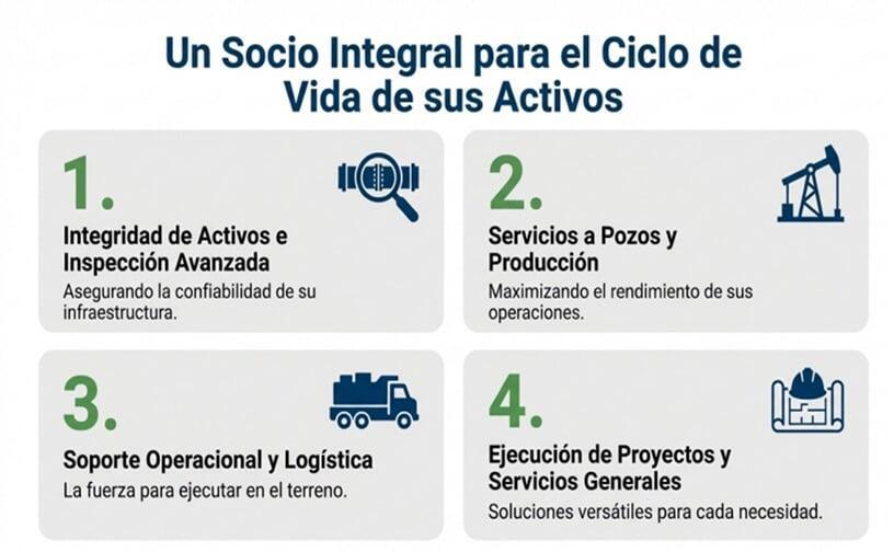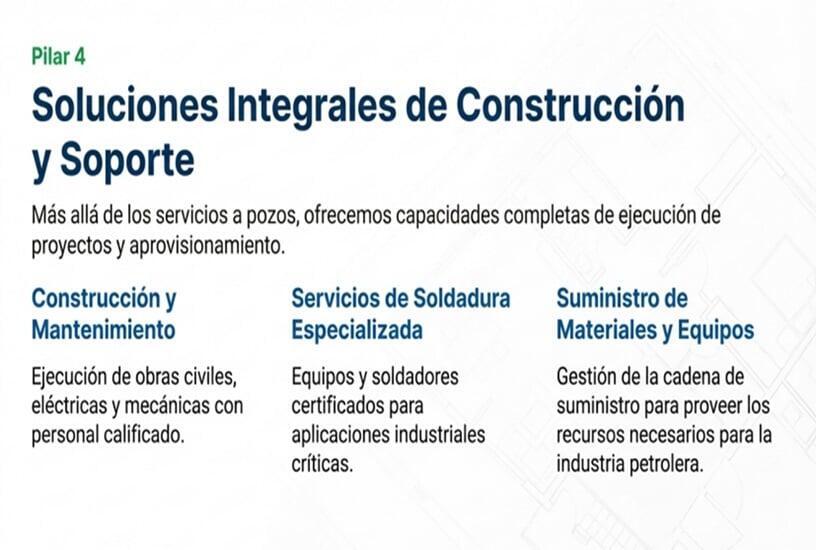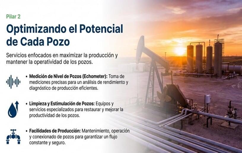 - Facilidades de producción, mantenimiento y conexionado de pozos.