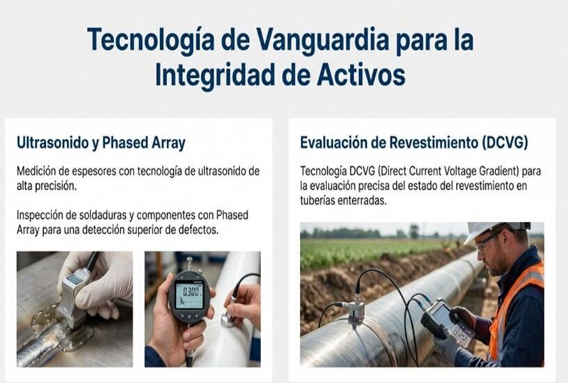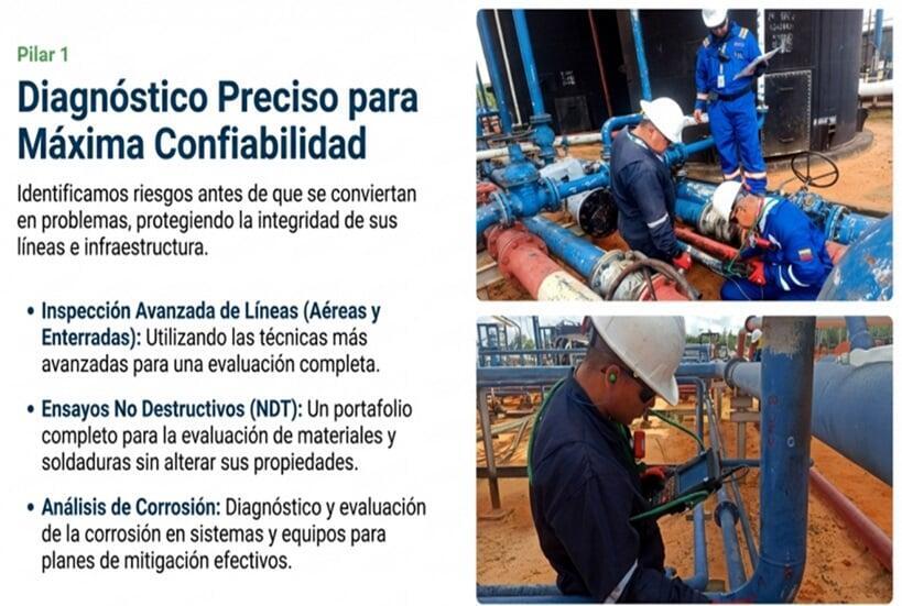 - Análisis de integridad y corrosión de los sistemas de oleoductos y equipos estáticos.